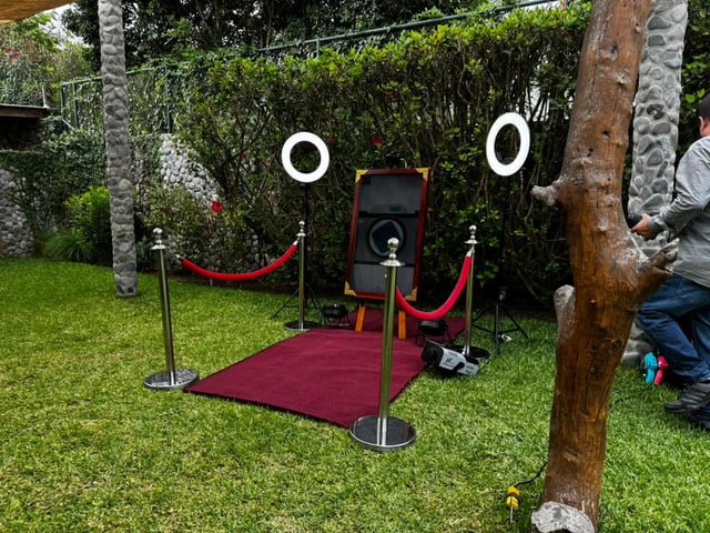 Con bordes redondeados, un exterior brillante y estética antigua. Esta fotocabina es perfecta para bodas vintage, fiestas temáticas y eventos corporativos elegantes. Está hecho a mano con madera, con un trípode diseñado a medida y una pantalla táctil integrada que permite compartir instantáneamente copias digitales mediante Airdrop, mensaje de texto, código QR o correo electrónico. Este diseño impresionante y elegante seguramente brindará a sus invitados una experiencia premium y vintage, y al mismo tiempo, dejara un hermoso recuerdo.